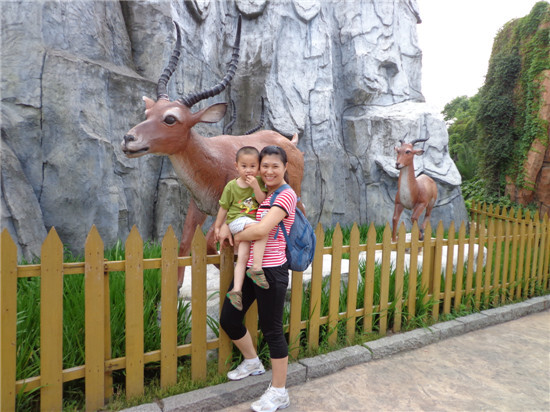 高蕾霞和她那帥氣的兒子在雪域飛鷹景點處留下足跡,小家伙在兒童游樂場玩得可開心啦