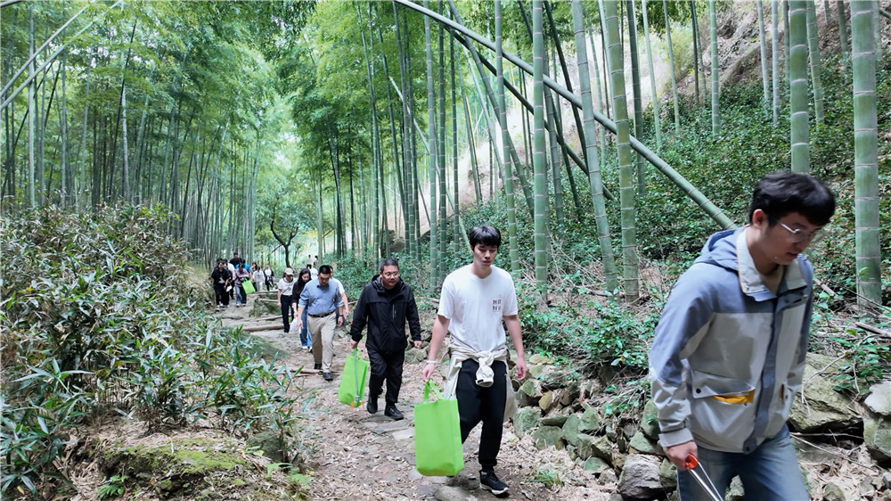 寧波活動地點設在桃花嶺古道。參與者領取拾物夾、垃圾袋等環保工具后,跟隨行政人員沿途清理古道上的垃圾。盡管小雨過后山道濕滑,但大家依舊熱情不減。在靜謐的山林與竹林間,大家不僅增強了身體素質,也在實踐中感受到環保公益的魅力。