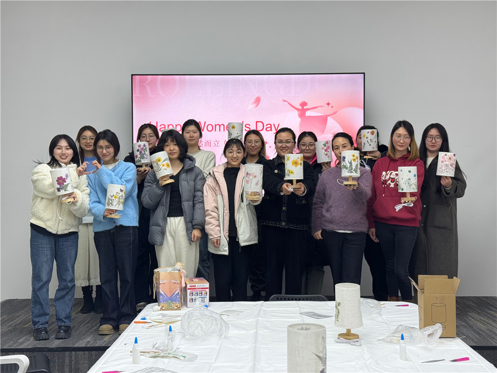 一場(chǎng)治愈系手作盛宴暖心開(kāi)場(chǎng),從挑選干花、構(gòu)思圖案到精準(zhǔn)塑封,姐妹們指尖流轉(zhuǎn)巧思,將山茶、雛菊、櫻花等春日信物融入燈罩。壓花時(shí)的專(zhuān)注、拼貼時(shí)的笑語(yǔ)、點(diǎn)亮臺(tái)燈時(shí)的驚嘆……光影交錯(cuò)間,一件件專(zhuān)屬藝術(shù)臺(tái)燈誕生!每一盞燈都是職場(chǎng)之外的溫柔自白,更是獻(xiàn)給自己的“高光作品”。活動(dòng)尾聲,大家抱著親手制作的壓花臺(tái)燈合影,暖黃燈光映亮笑顏,辦公室瞬間變身“春日藝術(shù)館”!