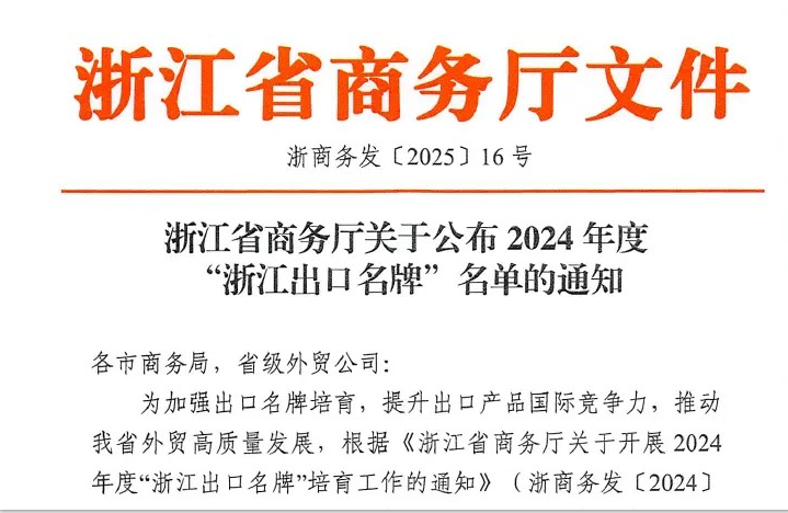 實力見證!優勝榮登2024年度“浙江出口名牌”榜單